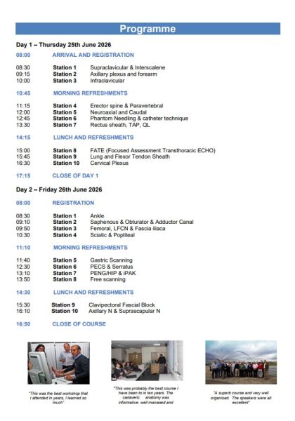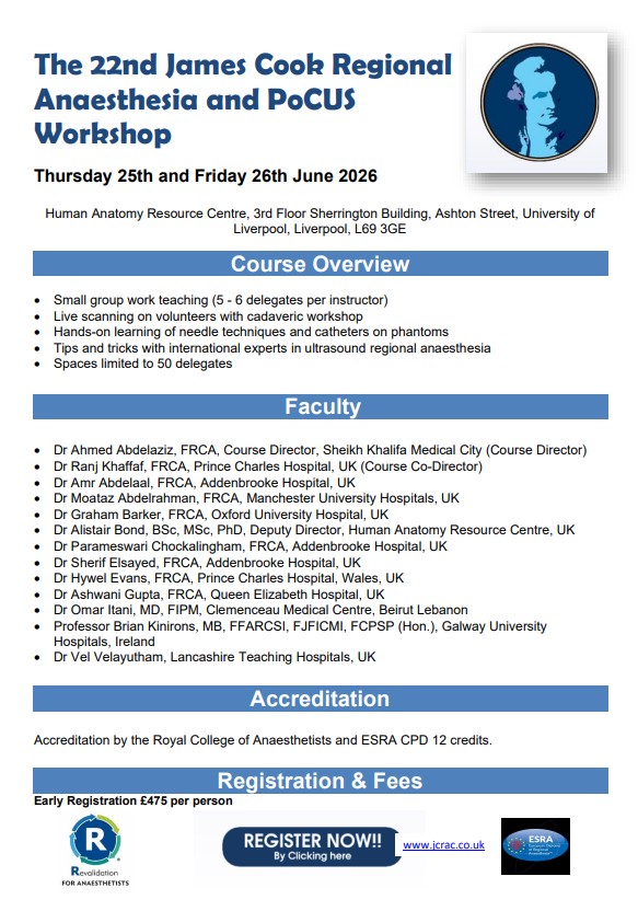 The 22nd James Cook Regional Anaesthesia and PoCUS Workshop (UK) 2026
